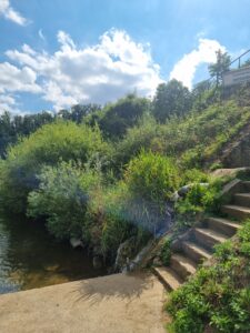 Die Reise startete in Gelnhausen am Bahnhof. Mit dem Zug ging es los, weiter ging es zu Fuß bis zum Kanuverleih. Ab dort führte sie ihre Reise in der Lahn weiter. Gleich am Anfang kenterte das erste Boot, nass aber mit Entschlossenheit ging es weiter. Jeden Abend legte sie auf neuen Campingplätzen an, dabei begegneten sie vielen neuen Leuten. Ein paar von ihnen begegneten sie, unterwegs immer mal wieder auf der Lahn. Durch die schwarzen Zelte, waren sie ein Blickfang und Gesprächsthema auf jedem Campingplatz. Auch das Schwimmen in der Lahn kam natürlich nicht zu knapp 🙂