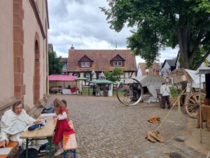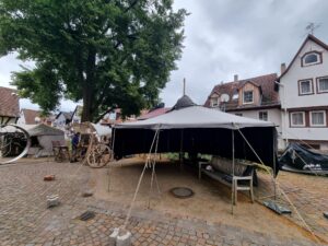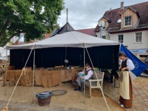 An einem Wochenende verwandelte sich dann, die Gelnhäuser Innenstadt zurück in das Jahre 1170. Häuser wurden geschmückt, Autos wurden „entfernt“, Marktstände entstanden, Heuballen lagen auf den Gassen herum und Leute in mittelalterlicher Kleidung wandelten durch Gelnhausen.
