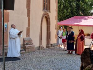 Im Vorfeld wurden wir von der „Kleiderkammer“ mit mittelalterlichen Kostümen eingekleidet. Dieses geschah so herzlich und mit solcher Freude, dass es uns allen noch lange im Gedächtnis bleibt.
